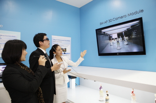 먼저 광학기술(Optical Technology) 부문에서는 초소형 3D 카메라모듈이 관람객의 눈을 사로잡는다. 500만 화소 자동초점 3D 카메라 모듈로 실시간 촬영한 영상을 3D TV를 통해 시청할 수 있다.