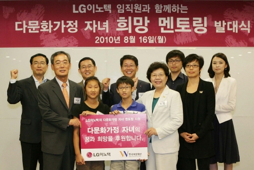 LG이노텍은 한국여성재단과 함께 지난 8월 16일 서울 남대문로 본사에서 다문화가정 자녀를 후원하는 프로그램인 ‘희망 멘토링’ 발대식을 실시했다.