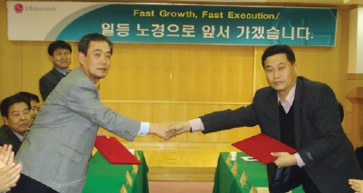 노경이 하나임을 다시 한번 확인한 ‘05년 임단협 LG이노텍은 지난 3월 11일, 이기동 노동조합위원장을 비롯한 노(勞)측과 CEO를 비롯 한 경(經)측 교섭위원들이 참여한 가운데 2005년도 임단협을 성공적으로 마무리했다.