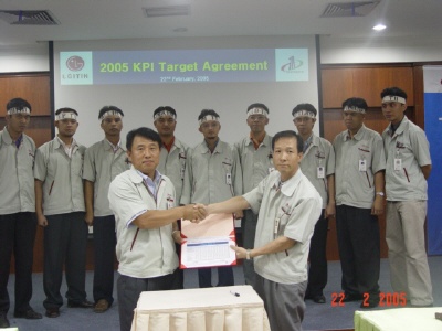 지난 2월 22일과 23일, LG이노텍 인도네시아법인과 혜주법인에서는 각각 `05년 KPI 목표 합동 조인식이 실시되었다. 23일에 치러진 혜주법인의 목표 조인식은 이종태 법인장을 비롯한 각 부서 실장, 그룹장, 선임 등이 참석한 가운데, 세 개의 행사로 나뉘어 진행되었다. 우선 실장, 그룹장의 진행 하에 `05년 KPI 목표에 대한 발표가 이루어졌으며, 파트리더급 사우들은 현장 구호 제창 등으로 분위기를 끌어올렸다. 이후에는 이종태 법인장이 각 부서별로 `05년 KPI 목표 완성에 대한 결의서 조인을 이끌었다. 이번 조인식을 통해 혜주법인 사우들은 ‘05년 법인 목표를 공유함은 물론 목표 달성 의지를 고취하는 뜻깊은 시간을 가졌다.