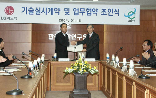 LG이노텍(대표 허영호)이 1월 15일 한국화학연구원(원장 김충섭)과 LED 형광체 기술계약 및 업무협약을 체결하고 동 연구원 대회의실에서 조인식을 가졌다.